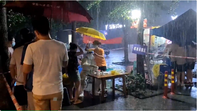 据相关媒体披露数据显示,防护服下的体感温度或可达到64℃!白天还是高温“烤”验,匆匆吃两口盒饭就到了晚上,倾盆大雨说来就来,“大白”们毅然在雨中坚守!