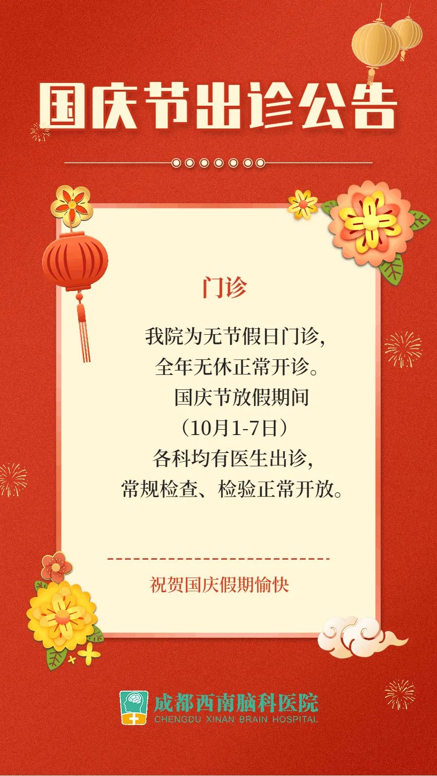 为更大程度服务于百姓生活,根据医疗工作中患者假日“看病难、看病贵,看医生更难”的现实状况。成都西南脑科医院党支部通过会议决定:国庆期间正常接诊。