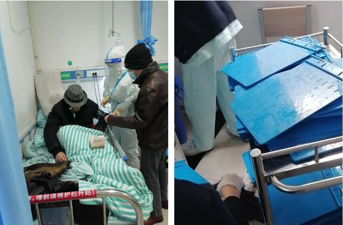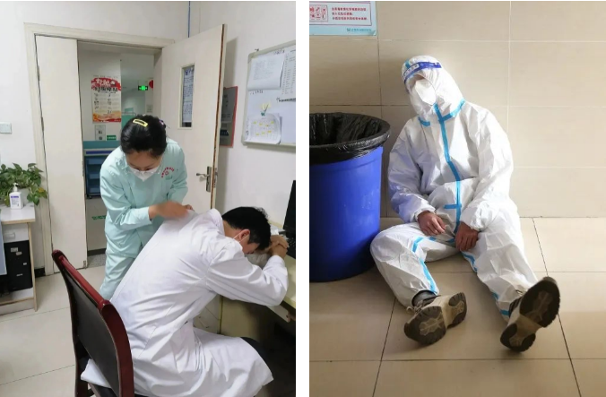 此时此刻,调配床位、转运病人、坐班看诊、药剂科供药、护理配药......在救治患者的“战场”上全力以赴,用责任、使命、毅力和初心全力保障新冠患者的就诊工作,即使累瘫在地,也毅然坚守在岗位。