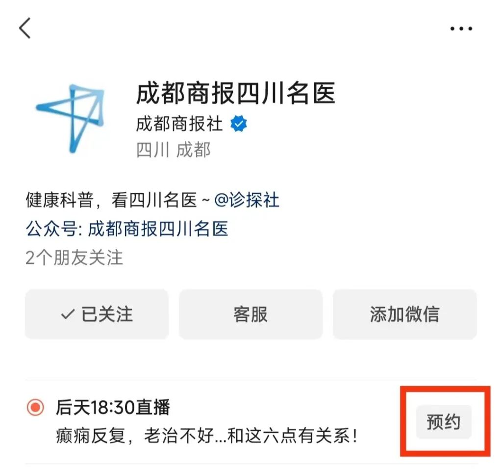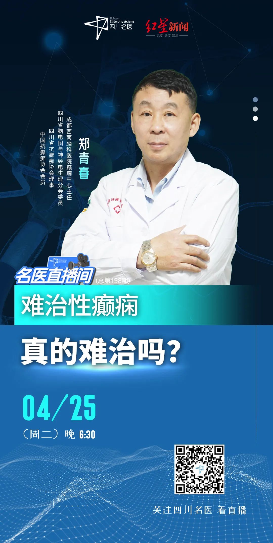 为了更好地解决以上问题,4月25日(周二)下午18:30,我院癫痫中心主任受邀做客成都商报四川医生微信视频号直播间,欢迎大家来直播间提问!
