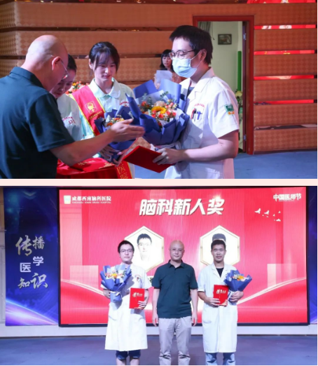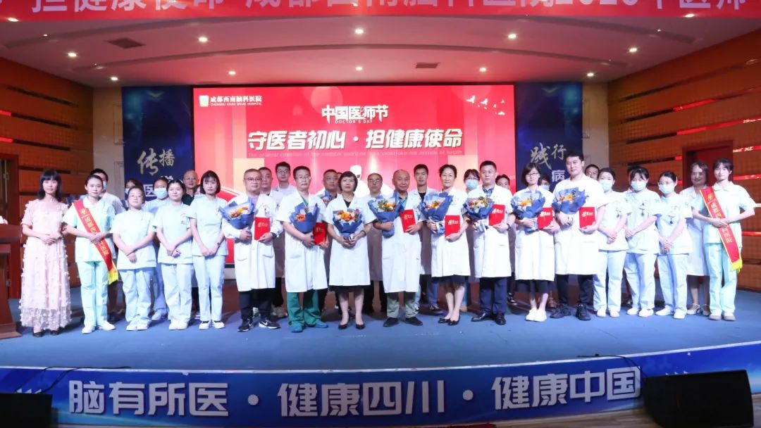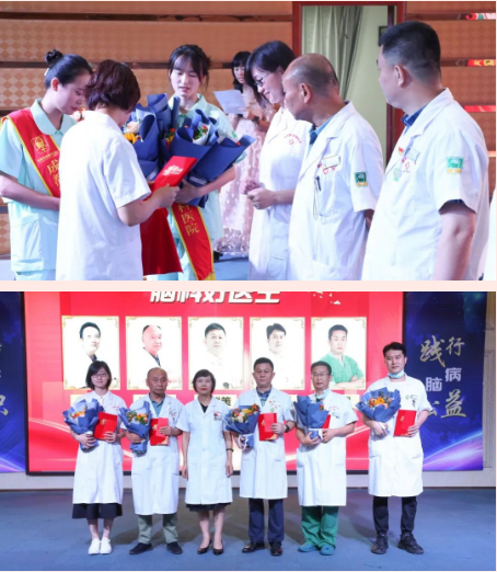 医生职业融友爱、责任和道义于一身,虽然沉重,却深感光荣而又无怨无悔!铮铮的誓言是一种坚定的信念,落实到临床工作,涌现出了大批脑科好医生。在接下来的颁奖仪式里,我院邢雯梅院长和党支部王桂芝主任、医务科宋光安主任、院办袁宾主任一起,为我们优秀的医务工作者颁发了荣誉证书。