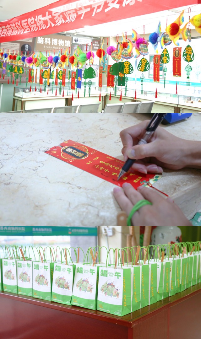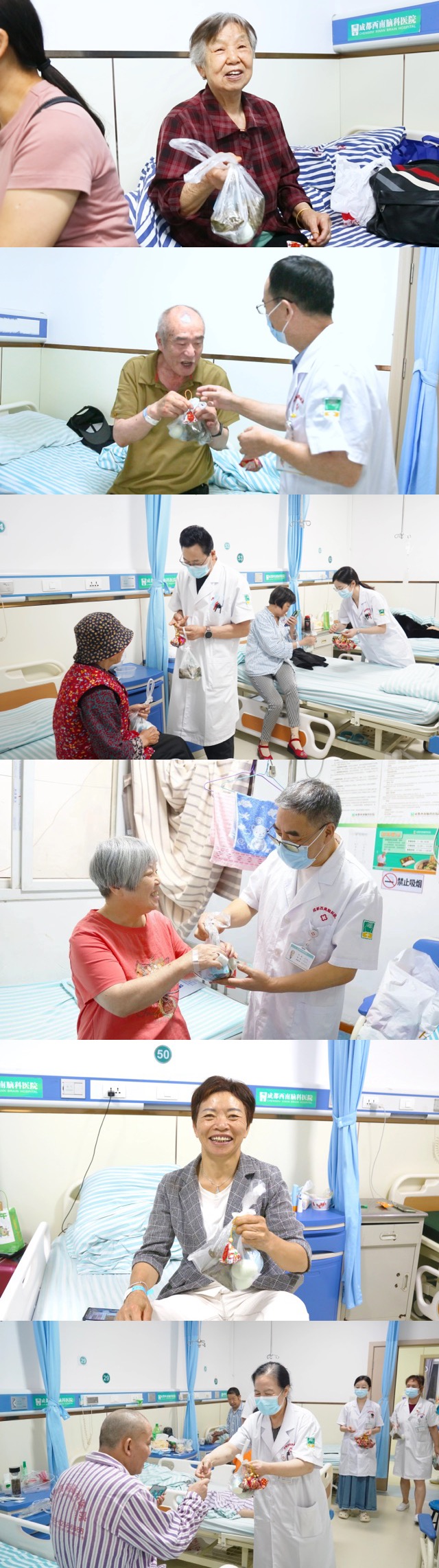 包完粽子,猜完灯谜,西南脑科医护人员还为住院病人及家属送去了粽子和咸鸭蛋,为院内病人提供力所能及的帮助,让他们在安心治病养病的同时,也能享受节日的快乐。