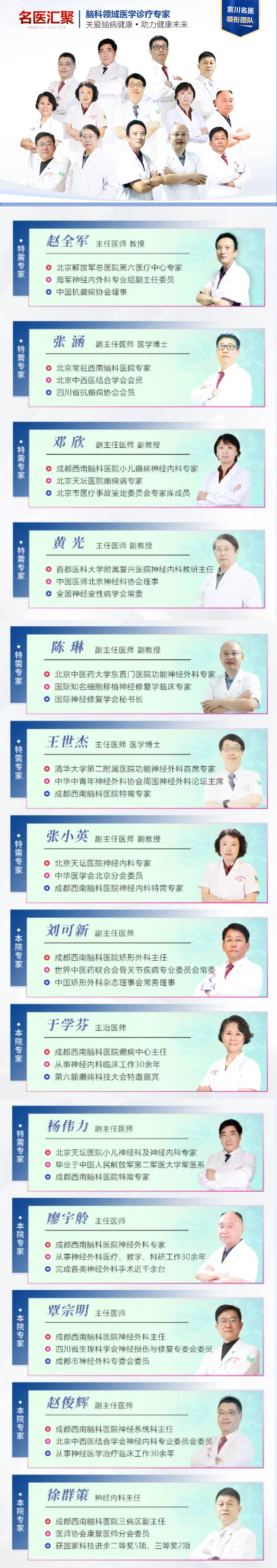 活动期间,患者们将享受到京川两地脑科专家免费义诊,从全方位、多角度、多层次入手,细致地剖析每一位就诊患者的病情、病因,提供针对性的用药指导;判断患者是否适合外科微创治疗以及外科治疗效果评估;康复医师也将提供患者的日常行为康复指导,并制定个性化方案,确保每位患者都能通过对症的诊疗早日实现病情好转、康复。